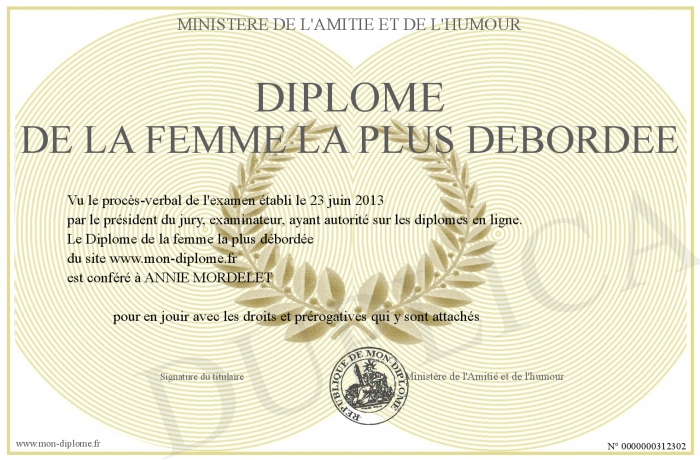 Téléchargement gratuit Diplome De La Femme La Plus Debordee